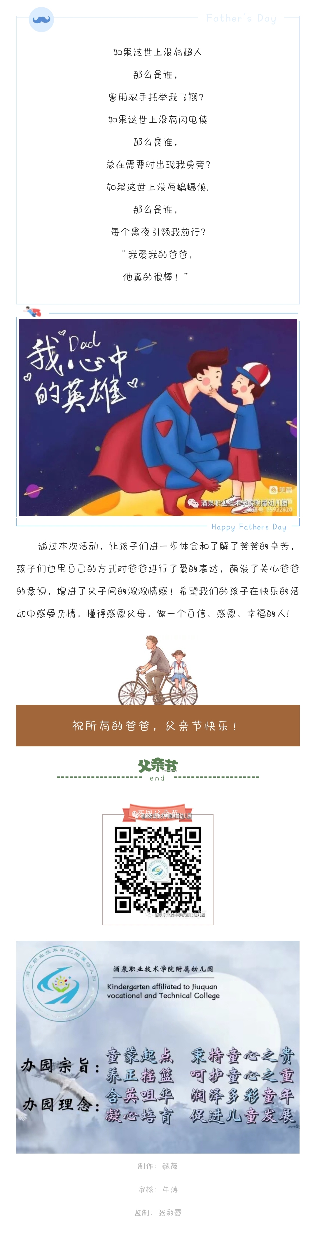 “我在努力长大,请你慢慢变老”一一酒泉职业技术学院附属幼儿园父亲节主题活动