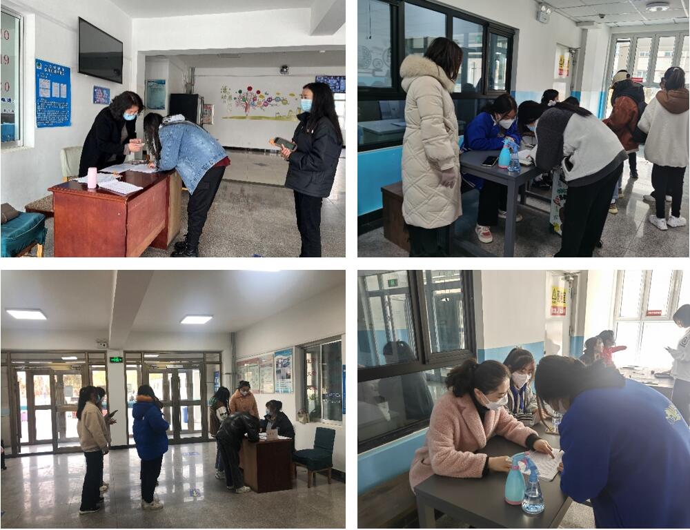 各班级于2月25日召开“安全教育、疫情防控”线上主题教育班会,加强返校学生精准摸排管理,全面排查、持续监测健康状况,建立师生健康管理台账。2月27日开学报到注册严格落实疫情防控措施,相关人员在校门口、学生公寓设立“党员服务先锋岗”,“点对点”、“人盯人”跟进学生核查健康状况,查验信息、排队测温、报到注册等工作井然有序,多措并举筑牢防疫堡垒,服务学生报到注册。