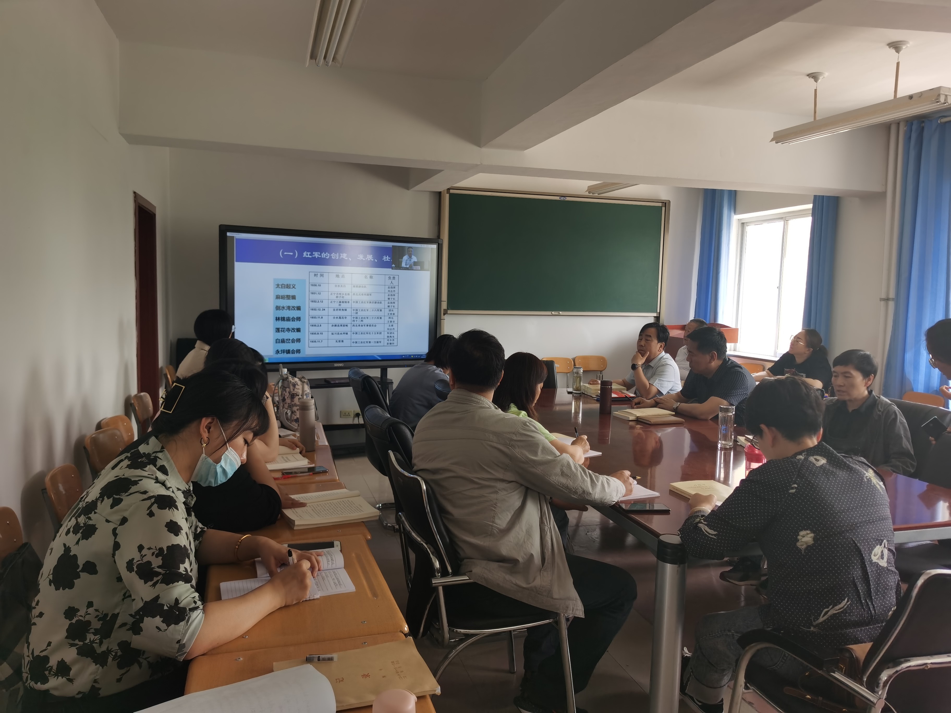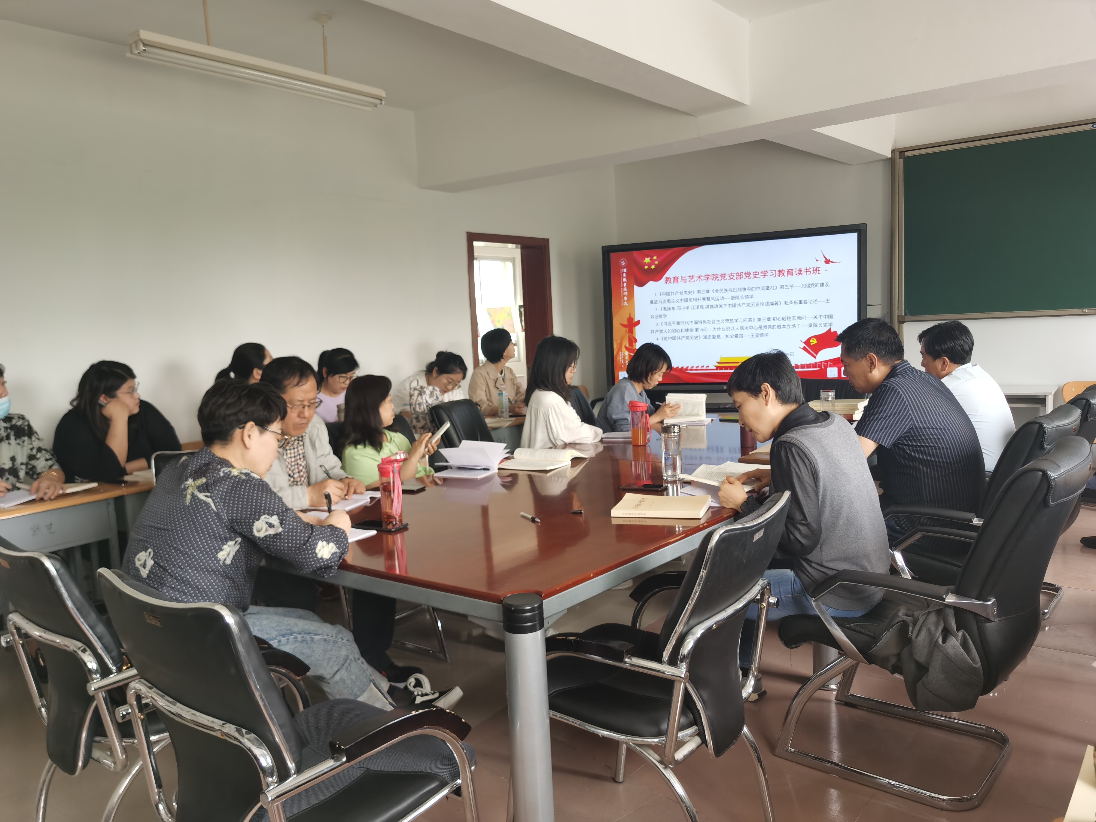 为进一步推动党史学习教育走深、走实,促使教育与艺术学院上下行成学党史、悟思想、办实事、开新局的浓厚氛围。5月25日,教育与艺术学院全体教职工在明德楼211会议室集中观看了由省委组织部“党课开讲啦”第二讲,同时举办党史学习教育专题读书班,集体学习习近平总书记《论中国共产党史》《毛泽东 邓小平 江泽民 胡锦涛关于中国共产党历史论述摘编》《中国共产党简史》《习近平新时代中国特色社会主义思想学习问答》的部分篇目。