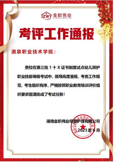 教育与艺术学院高度重视“1+X”幼儿照护证书考评工作,根据证书考务要求制定考评实施工作方案,积极与证书培训评价组织沟通,协同酒泉师范学校收集学生报名材料,协调、布置考场,完成前期考务准备工作。考试动员与培训、考务流程、物料准备、资料准备等在“1+X”幼儿照护育训创新团队成员们的反复研讨下最终确定,每一个环节都经过仔细推敲,最终保证了考试的效率和流畅度。