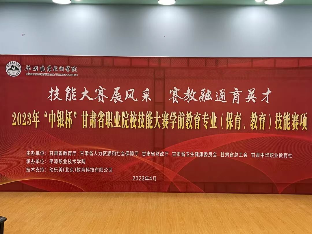 本次比赛由甘肃省教育厅、甘肃省人力资源和社会保障厅、甘肃省财政厅、甘肃省卫生健康委员会、甘肃省总工会、甘肃中华职业教育社主办的省级职业技能赛项,由平凉职业技术学院承办,幼乐美(北京)教育科技有限公司提供技术支持。赛项设置中职学生组、中职教师组、高职学生组和高职教师组四个分组。其中,高职学生组每个参赛队由两位参赛选手组成,高职教师组每个参赛队由三位参赛选手组成。大赛设A、B、C三个赛场,共有7个竞赛项目,分别为幼儿园保教活动课件制作、幼儿园保教活动分析、幼儿教师职业素养测评、命题画、幼儿园教育活动设计、说课、片段教学。