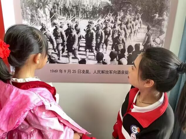 讲好红色故事,赓续红色血脉。社区党群干部带领青少年儿童及七色花志愿者参观了解放路社区“酒泉和平解放历史图片展览馆”红色教育基地,进一步引导少年儿童多阅读、多思考,以革命英雄为榜样,树立远大理想,志愿者给少年儿童讲述《英雄人物王二小》《小英雄雨来》等红色故事,学习革命先烈们为革命胜利不畏艰苦、用鲜血谱写生命赞歌的光荣事迹,通过播下“红色种子”,传承红色基因,赓续红色血脉,让他们从小树立爱国爱党的情怀。
