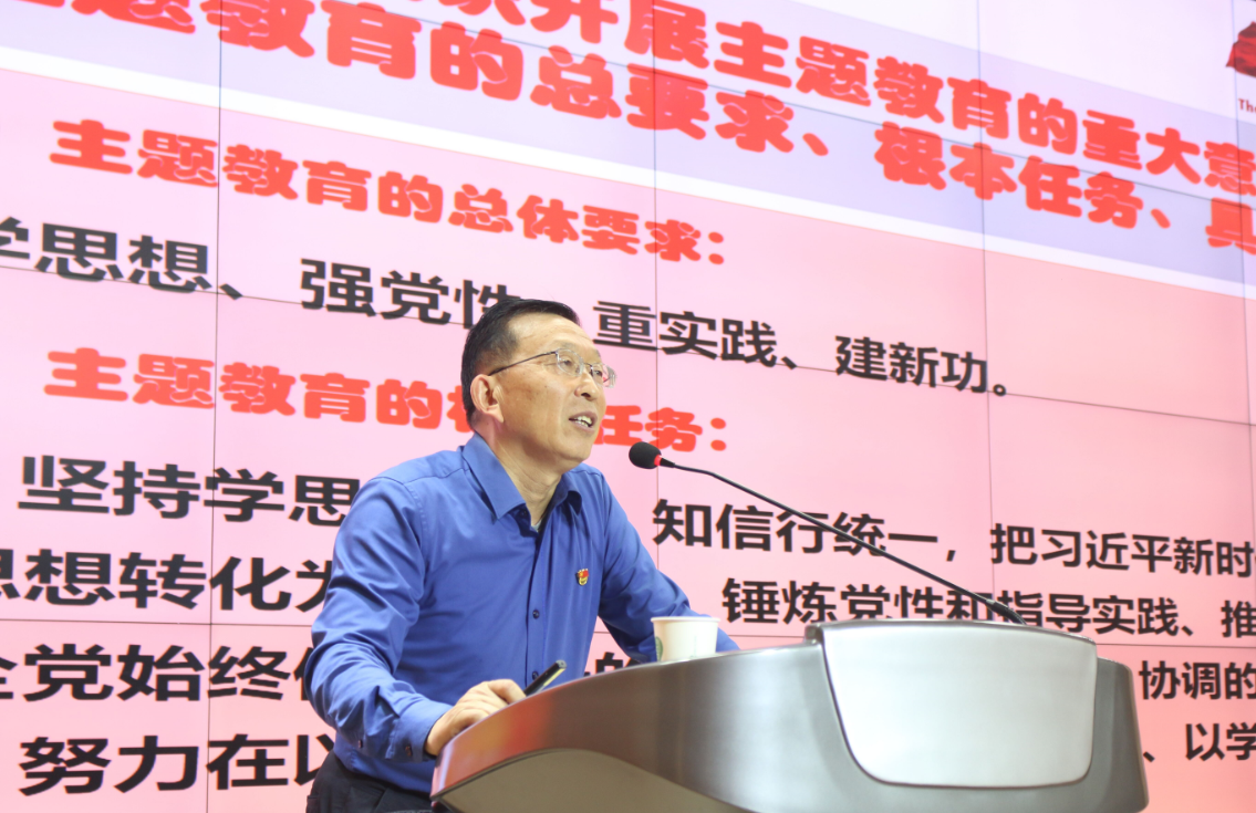 易志军书记以“理想 信念 使命”为题,首先从深刻认识开展主题教育的重要意义、总要求、根本任务等进行了详细的阐述。他强调,要坚持学思用贯通、知信行统一,把习近平新时代中国特色社会主义思想转化为坚定理想、锤炼党性和指导实践、推动工作的强大力量,努力在以学铸魂、以学增智、以学正风、以学促干方面取得实实在在的成效。接着,从准确把握理想信念的深刻内涵,坚定理想信念是共产党人安身立命的根本入手,要求各党组织和党员干部要用历史唯物主义世界观和方法论抓好思想理论建设,抓好党性教育,强化理想信念的体制机制保障,始终保持共产党人的本色,彰显共产党人的人格力量。最后,从坚定理想信念,坚守使命追求阐述,要求广大师生要把开展主题教育同深入贯彻党的二十大精神结合起来,积极行动,以实干担当促发展,高效做到专业建设匹配产业发展,人才培养质量匹配产业高质量发展要求,以创建酒泉职业技术大学为奋斗目标,以推动建设市域产教联合体为抓手,深化产教融合、科教融汇,不断提升人才培养质量,提高毕业生在酒泉的就业比率,为加快建设幸福美好新酒泉贡献酒职力量。
