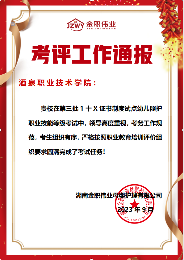 为深入贯彻落实习近平总书记甘肃重要讲话和指示精神,落实《国家职业教育改革实施方案》《教育部甘肃省人民政府关于整省推进职业教育发展打造“技能甘肃”的意见》文件精神,凝心聚力打造“技能甘肃·匠心酒泉”职教高地,提升技能型人才培养质量,促进职业教育高质量发展,教育与艺术学院组织承办的1+X幼儿照护职业技能等级证书(中级)考评于2023年9月23日圆满结束,完成2023年第三批次41人培训考评工作。