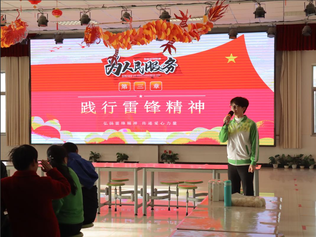 “雷锋故事我来听”环节中志愿者为孩子们讲述了“捐钱”“红领巾的知心朋友”“可敬的傻子”“一次义务劳动”等雷锋故事,并就“我与雷锋的差距”“如何帮助他人”等方面与孩子们进行现场互动,引导孩子感悟雷锋精神内涵与实质。