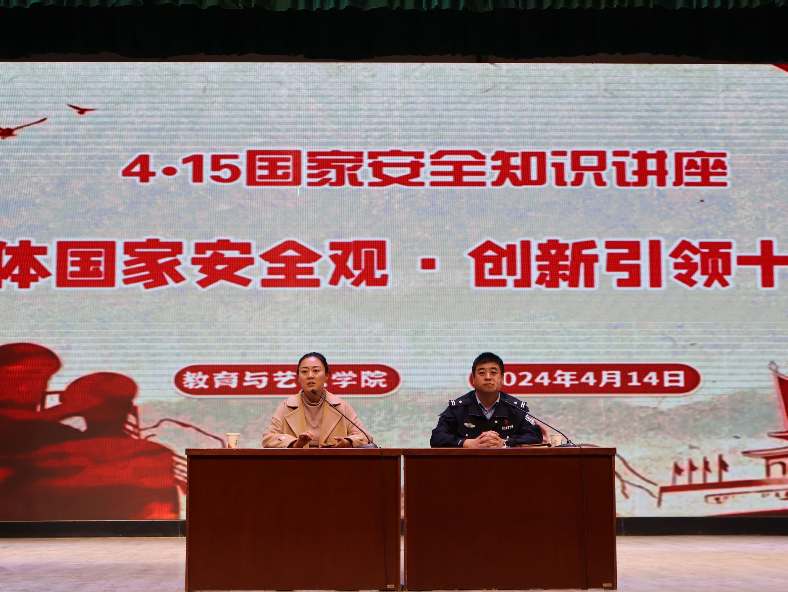 2024年是习近平总书记提出总体国家安全观10周年,4月15日是第九个“全民国家安全教育日”。为深入学习贯彻总体国家安全观,切实提高学生国家安全意识,夯实国家安全基础,自觉履行维护国家安全义务,增强学生国家安全责任。4月14日教育与艺术学院特别邀请酒泉市火车站派出所章指导员为全体学生开展“总体国家安全观·创新引领10周年”——4.15国家安全知识讲座。
