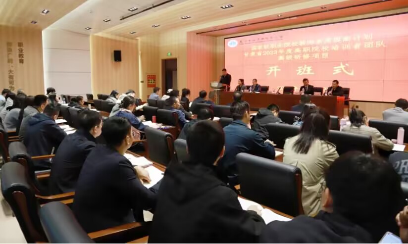 为贯彻落实教育部等14个部门印发的《职业院校全面开展职业培训 促进就业创业行动计划》,根据甘肃省教育厅的相关部署和要求,由天津中德应用技术大学主办、酒泉职业技术学院承办的甘肃省2023年度高职院校培训者团队高级研修项目于2024年4月18日在我校顺利开班。天津中德应用技术大学党委常委、副校长孙更春以及酒泉职业技术学院党委书记、校长易志军,党委委员、副校长王金明应邀出席开班仪式。开班仪式由天津中德应用技术大学继续教育与培训中心项目负责人张文韬主持。