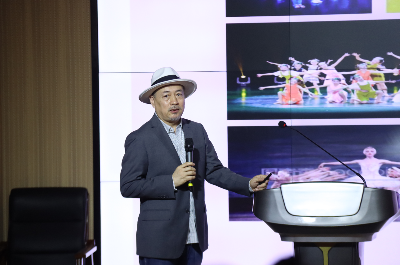 授牌仪式上,清华大学艺术教育中心副教授邢高熙作了题为“舞蹈文化与时代审美——以杨丽萍老师龙年《龙舞》为例,谈非遗舞蹈的高科技发展”的专题讲座。邢教授从“原始社会舞蹈阶段”“奴隶社会舞蹈阶段”“封建社会舞蹈阶段”三个阶段阐释中国古代舞蹈的变迁,以《龙舞》为例讲述了中国现代美论的特点,以《永不消逝的电波》为例从“创作背景”“创作过程”“故事背景”“剧情简介”“舞剧特点”讲述中国舞蹈创造思潮及时代审美的变迁,结合“双减”和艺术培训形式讲述新时代艺术培训的趋向。