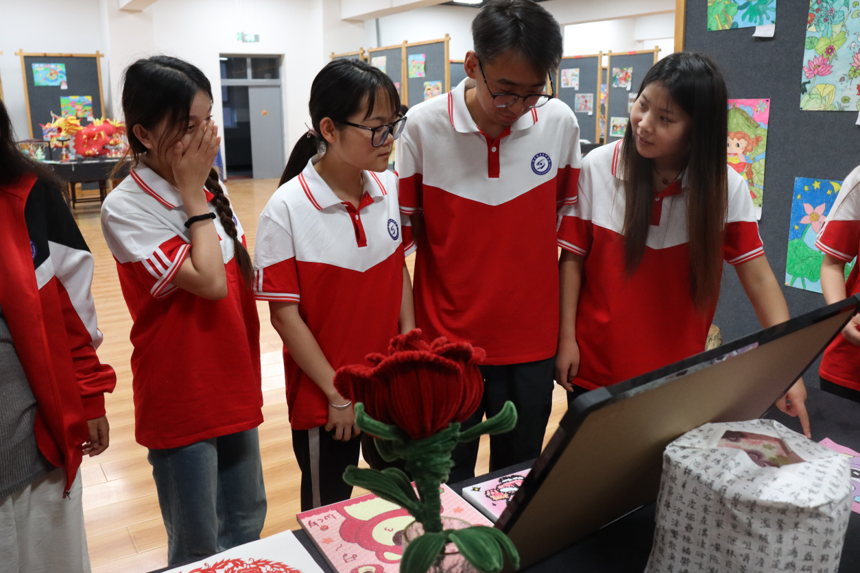 展览现场,来自学前教育专业的学生们呈现精心创作的儿童画。展览作品分为爱国、家风家训、科技、手工艺术等八个内容,共展出作品406幅。作品琳琅满目,色彩斑斓,不仅展现了学生们丰富的想象力和创造力,更体现了教师们在艺术教育中的专业水准和创新能力。学院还结合职业教育周组织了“儿童画创作现场展示”“书法现场展示”等系列丰富多彩的活动,在现场展示中,学生们运用巧妙的构思和细腻的手法,将抽象的概念转化为具象的图像,表达对生活的理解和感悟,并通过现场互动体验让其他非专业学生参与到儿童画、书法的创作过程中,感受艺术的魅力。