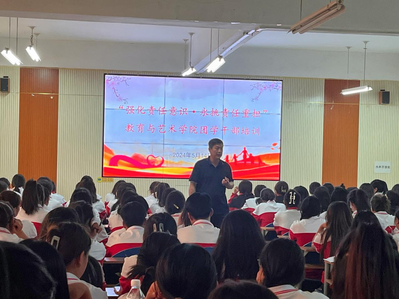 为进一步提高团学干部的政治素养、理论水平和业务能力,加强学院团学干部队伍建设,近日,教育与艺术学院在行知楼508教室开展了“坚定理想信念,强化责任担当”团学干部系列培训,学院130余名团学干部参加。