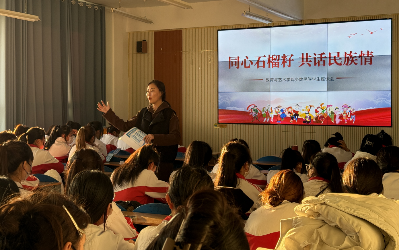 为深入学习贯彻习近平总书记关于民族团结进步的重要论述,有形有感有效地开展铸牢中华民族共同体意识宣传教育,12月11日至13日教育与艺术学院分批次召开“同心石榴籽,共话民族情”少数民族学生座谈会,学院党支部副书记梁志红、副院长张冬琴及少数民族学生参加座谈会。