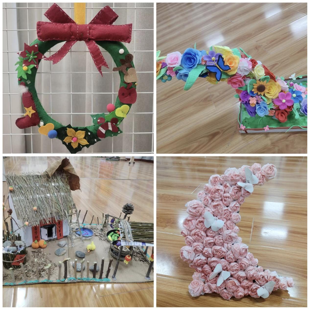 为进一步提高学前教育专业学生实践能力,培养学生良好的审美情趣。12月25日,教育与艺术学院在弘毅楼A101室就业大厅举办了“慧眼识美 巧手创意”2023级学前教育专业行动导向课程《幼儿教师艺术技能(手工)》作品展。