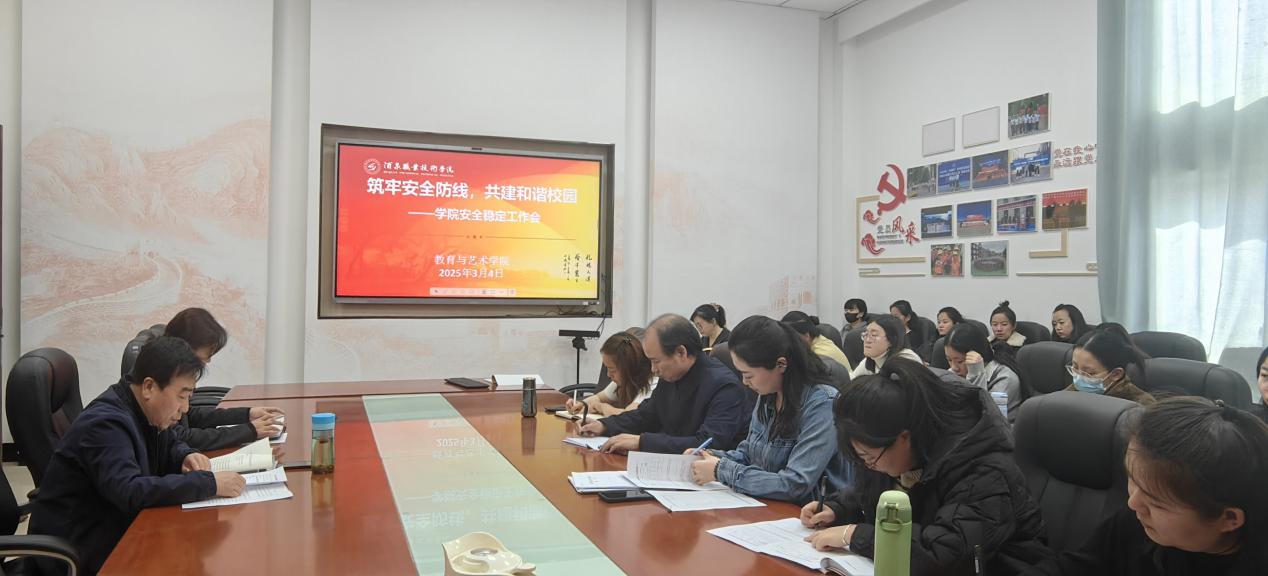为全面加强学院安全管理工作,筑牢安全防线,维护校园安全稳定,确保2025年春季学期工作安全、有序、顺利进行。3月4日下午,教育与艺术学院召开安全稳定工作会,会议由学院党支部副书记梁志红主持,全体教职工参加会议。