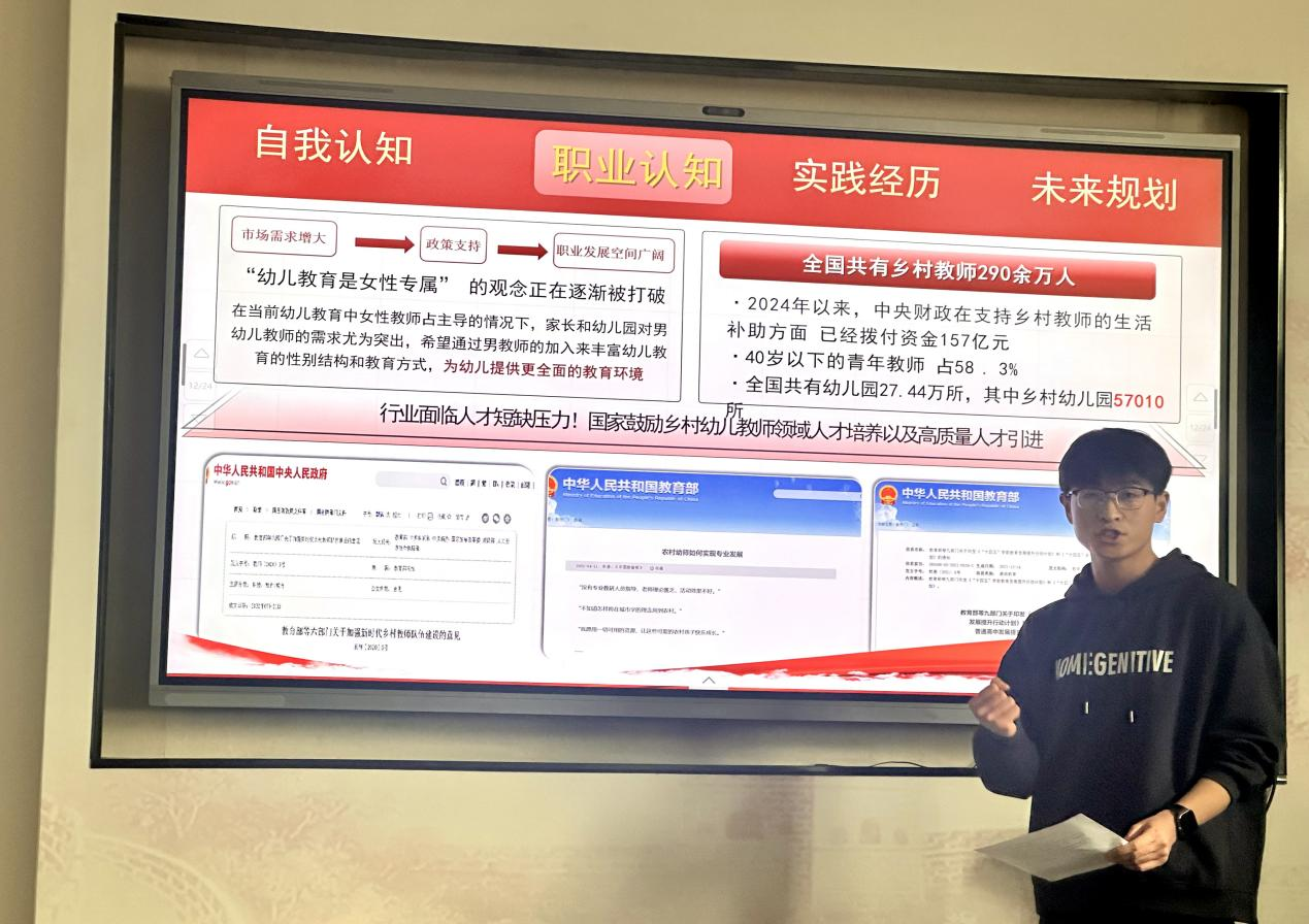 分享会上,田雅楠同学结合自身参赛经历,从“职业规划的重要性、职业目标的设定、职业路径的选择、参赛经验”等方面进行了详细讲解,他表示,参加职业规划大赛不仅是一次自我认知和职业探索的过程,更是一次提升综合素质和就业竞争力的宝贵机会。