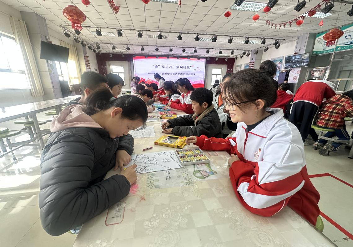 “春日绘梦”环节中志愿者充分发挥专长,以“一对一”结对帮扶的形式,通过绘画演示、手绘互动等形式,与孩子们一起画雷锋,在创作中感悟雷锋精神。