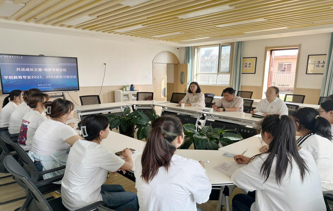 为精准把握学生实习动态,深度推进产教协同育人,6月11日,教育与艺术学院召开学前教育专业2022与2023级实习生座谈会。院长梁志红、党支部副书记张冬琴、副院长于芳出席会议,与实习生代表深入交流。此次座谈会是学院深化产教融合、优化人才培养路径的重要举措。