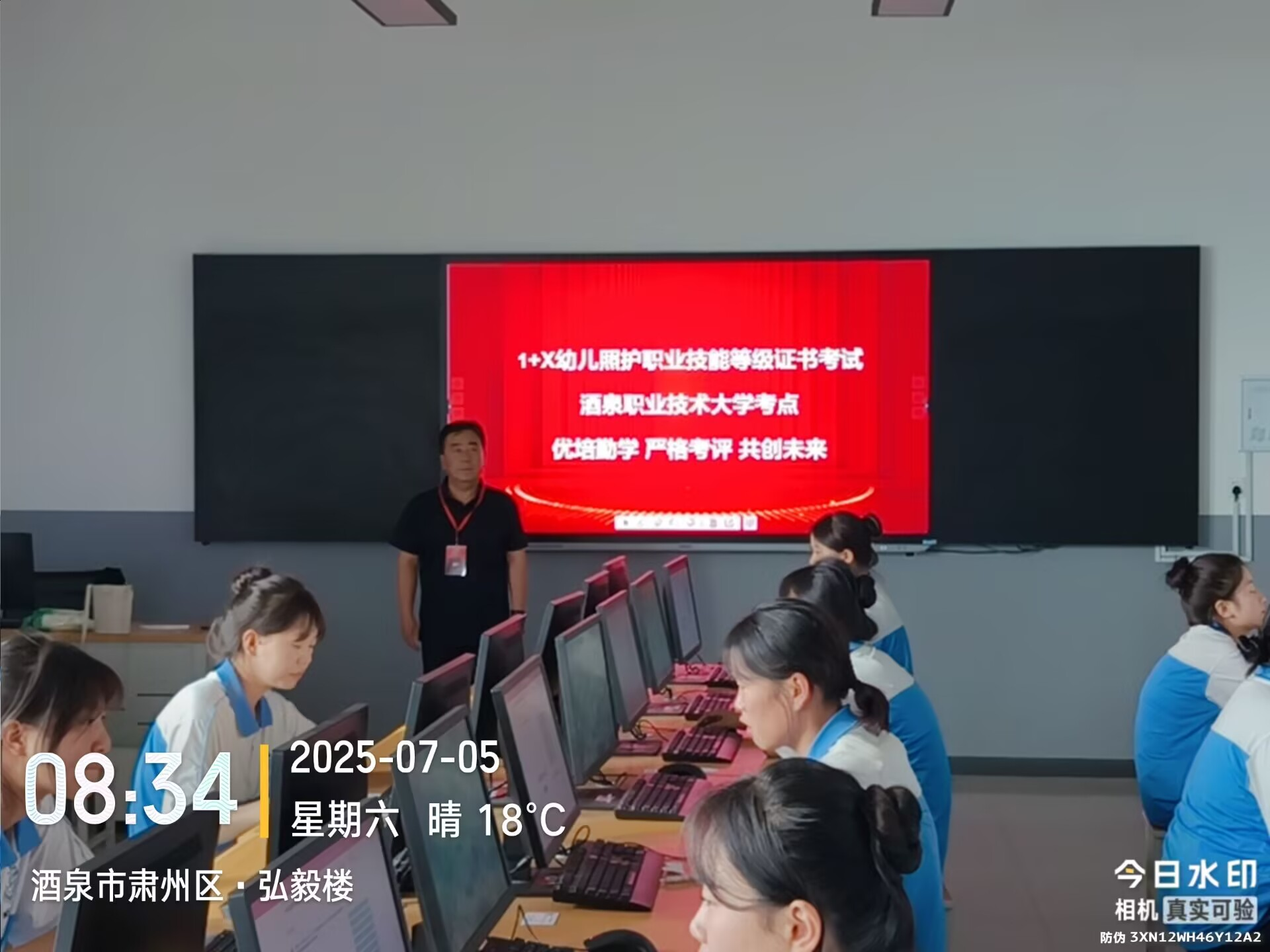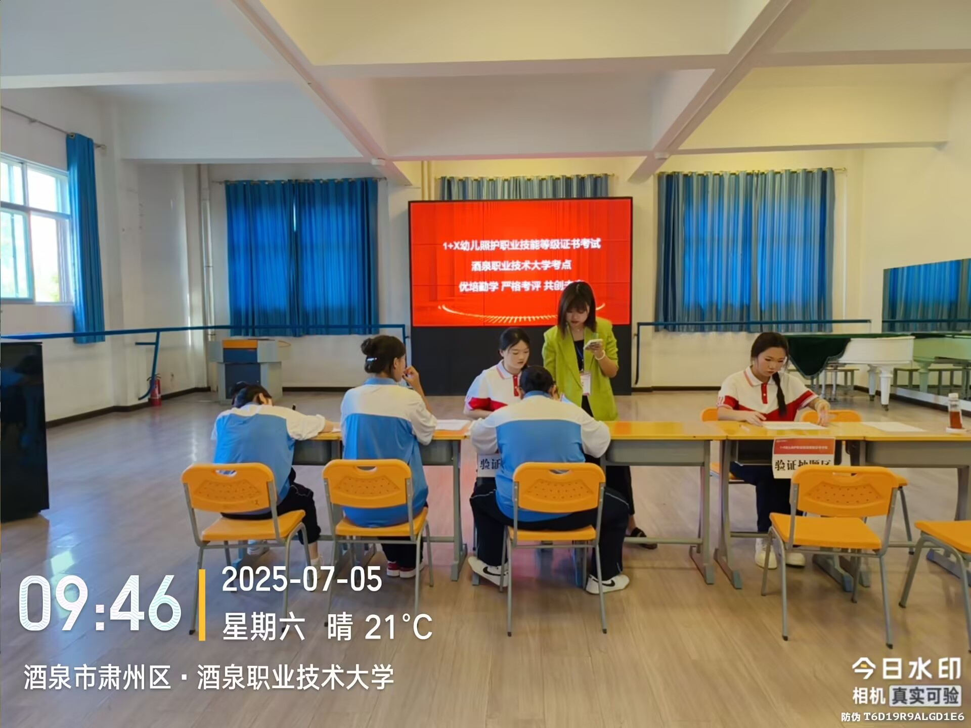 为深入贯彻《国家职业教育改革实施方案》,深化教育教学改革,推进育训结合、课证融通的人才培养体系建设,教育与艺术学院于2025年7月5日成功组织实施了新一期“1+X”幼儿照护职业技能等级证书(中级)考评工作。来自酒泉师范学校的29名幼儿保育专业学生参加了本次考评。